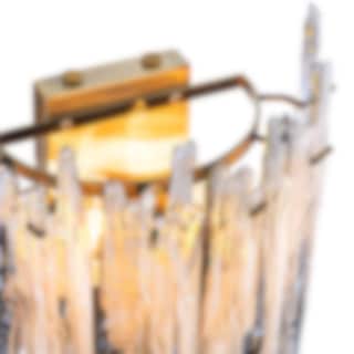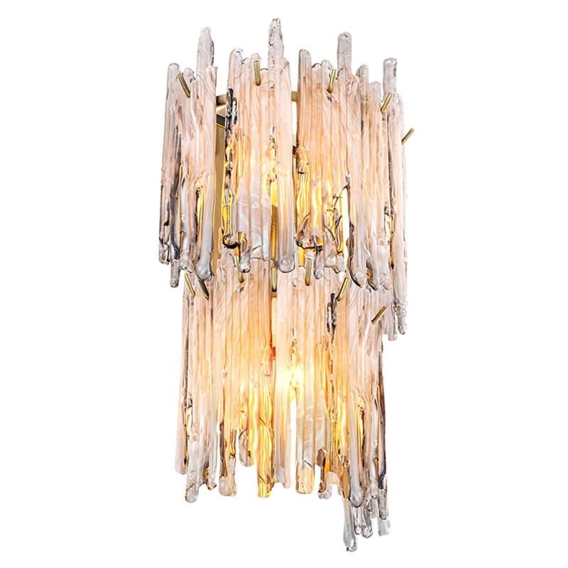 Saint Roch Vägglampa från Eichholtz förhöjer atmosfären i hall, sovrum eller matsal med sitt storslagna tvånivåiga utförande. Den har en lätt borstad mässingsfinish och är rikt dekorerad med rökt glas i droppform, vilket skapar ett imponerande och stämningsfullt ljus.
