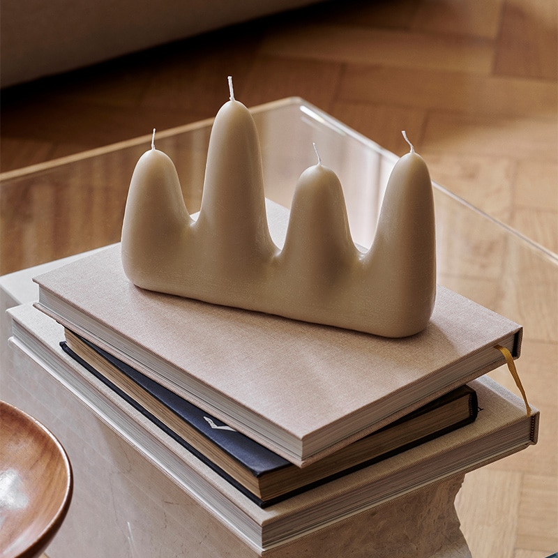 Stala ljus i sand från danska Ferm Living är ett vackert ljus i en organisk och iögonfallande design. Tack vare ljusets fyra vekar passar det lika bra att använda under sena sommarkvällar som under julens advent. Brinntid ca 20 h.