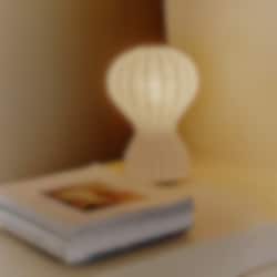 Gatto är en klassiker från 60-talet som i allra högsta grad fortfarande är omtyckt. Den vita stålkonstruktionen sprutas med en unik "kokong-plast" och avslutas med en skyddande spray. Lampan ger ett fantastiskt mjukt ljus som kan regleras med dimmer på sladden. Gatto Piccolo är den mindre av de två bordslamporna som tillverkas.