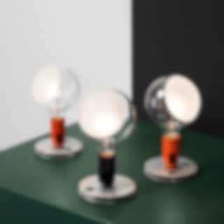 Lampadina är en typisk 70-talslampa som designades för öppningen av Flos showroom i Turin 1972. Den är fortfarande i produktion och har blivit något av en klassiker och är lättplacerad i många olika miljöer. På den hjulliknande basen går det att rulla upp överskott av kabeln.
