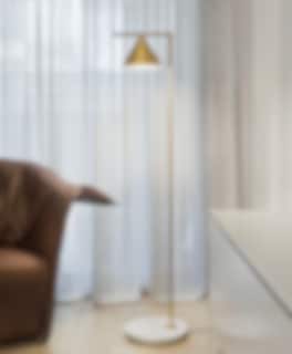 En golvlampa med två användningsområden: som up-light och som läslampa. Captain Flint finns dels i svartlack med svart fot i Marquina-marmor dels i mässing med vit fot med Carrara-marmor. En välbalanserad och formskön golvlampa av stjärndesignern Anastassiades.