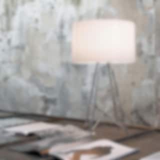 Ray bordslampa är den minsta lampan i Rodolfo Dordonis serie från 2007. Men för att vara bordslampa är den snarare i det större spannet. Ray står på en benkonstruktion i aluminium och har en väl tilltagen skärm som med sina spridare i innerskärmen ger ett jämnt och brett ljus. Dimmer på sladden.