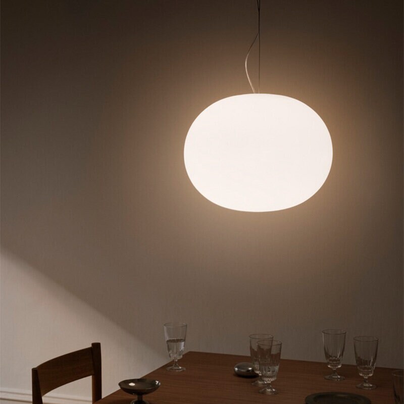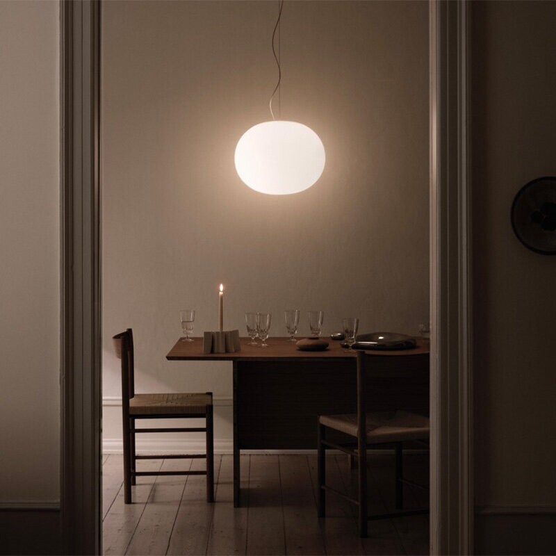 Glo-ball är en stor serie lampor som har en ren enkel design. Den första modellen kom ut 1998 och har sedan bygds på med olika storlekar och varianter. Dom tillverkas i handblåst opalglas och ger ett fantastiskt mjukt glödande ljus.