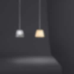 Den klassiska Romeo Soft i en mindre variant har en skärm av plisserat tyg med en inre ljusavskärmare i pressat glas. Elegant lampa som ger ett fint behagligt ljus.