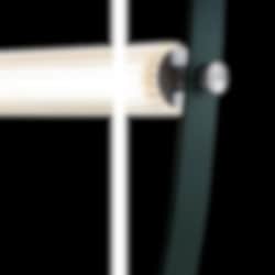 För WireLine använder Formafantasma åter strömkabeln som en av de viktigaste designfunktionerna. Kabeln är platt för att likna ett bälte av gummi som hänger från taket med ett ribbat glasrör som innehåller ljuskällan. Lampan leker med kontrasten mellan gummins industriella känsla och det eleganta glaset.