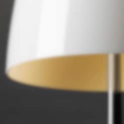 Denna klassiska bordslampa är en av Foscarinis storsäljare. Vacker och tidlös design med en skärm av munblåst vitt Muranoglas och ett stativ i svart krom. Fin i ett fönster, vid sängen eller i en hylla.