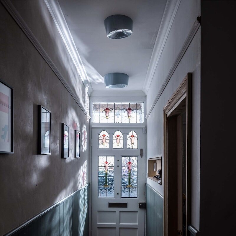 Armaturen kännetecknas av sin munblåsta glasdiffusor med ett snedskuret, oblixt skuret uttryck som skapar ett intressant visuellt spel både när lampan är tänd och släckt. Det handgjorda glaset ger en mjuk, varm belysning som sprider sig behagligt i rummet, medan den rena formen bidrar till en tidlös estetik.