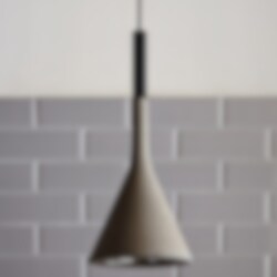 Aplomb från Foscarini är en lampa som utmanar konventionerna. Designen har en förfinad lätthet, men materialet är rustik betong. Foscarini lyckas genom att använda en egen betongblandning som klarar av att gjutas i tunna formar och resultatet blir en utsökt lampserie som mixar det robusta med det spröda. Aplomb gör sig fint i grupp över ett bord eller köksö, eller som fönsterlampa.