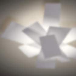 Plafond i en fantastisk design av överlappande plan som ger ett bländfritt reflekterande ljus. Passar i hemmets alla rum och kan placeras både i taket eller på väggen.