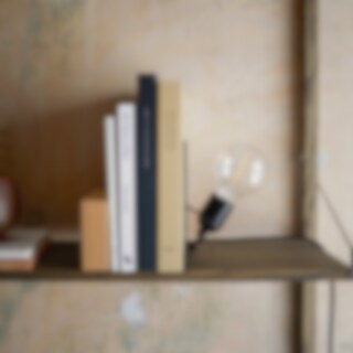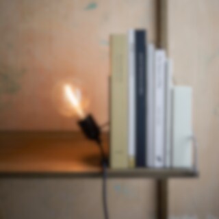 Library Lamp består av en kombination av vikt metallkropp och ljushållare för att skapa en bokstöd. Den kan placeras på hyllan eller skrivbordet, antingen som en bokstöd eller som en fristående armatur.