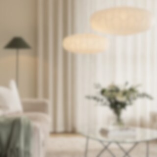 - Noah: En omtyckt och stilren plafond som vi säljer mycket av. Nu har serien utökats med en taklampa klädd i strukturerat bouclétyg som ger ett levande ljus.