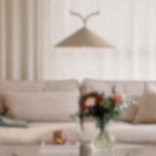 - Noah: En omtyckt och stilren plafond som vi säljer mycket av. Nu har serien utökats med en taklampa klädd i strukturerat bouclétyg som ger ett levande ljus.