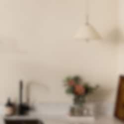 - Noah: En omtyckt och stilren plafond som vi säljer mycket av. Nu har serien utökats med en taklampa klädd i strukturerat bouclétyg som ger ett levande ljus.