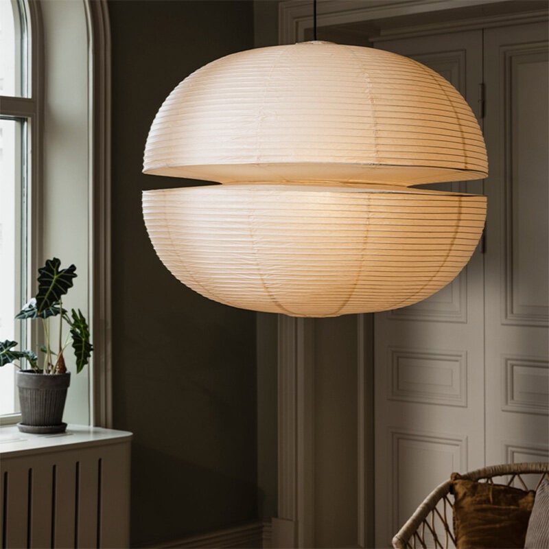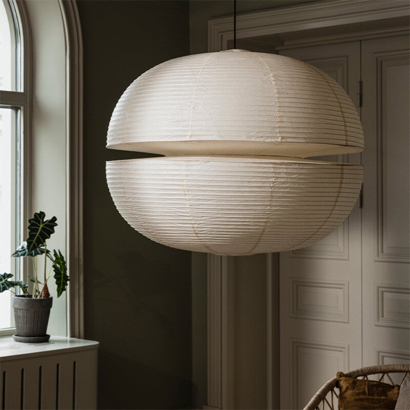 Eftersom rispappret är tunt och levande bör skärmen hanteras varsamt för att bevara dess form och undvika skador. Upphäng och ljuskälla säljs separat.