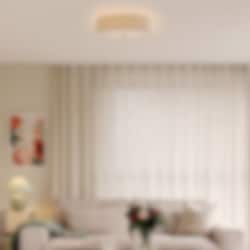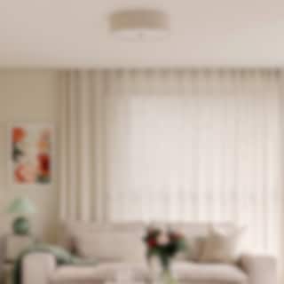- Noah: En omtyckt och stilren plafond som vi säljer mycket av. Nu har serien utökats med en taklampa klädd i strukturerat bouclétyg som ger ett levande ljus.