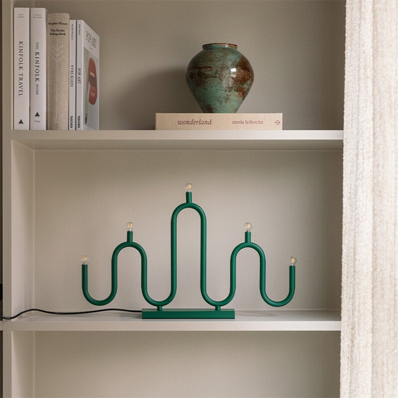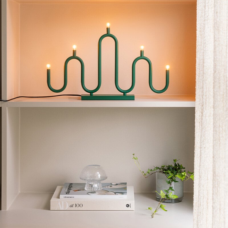 Mikael Holvik. Noel adventsljusstake har ett mjukt och böljande formspråk där varje metallrör bockas för hand i olika nivåer för att skapa den klassiska siluetten av en ljusstake. Med sin eleganta design gör den sig lika vacker i fönstret som på ett sidobord.