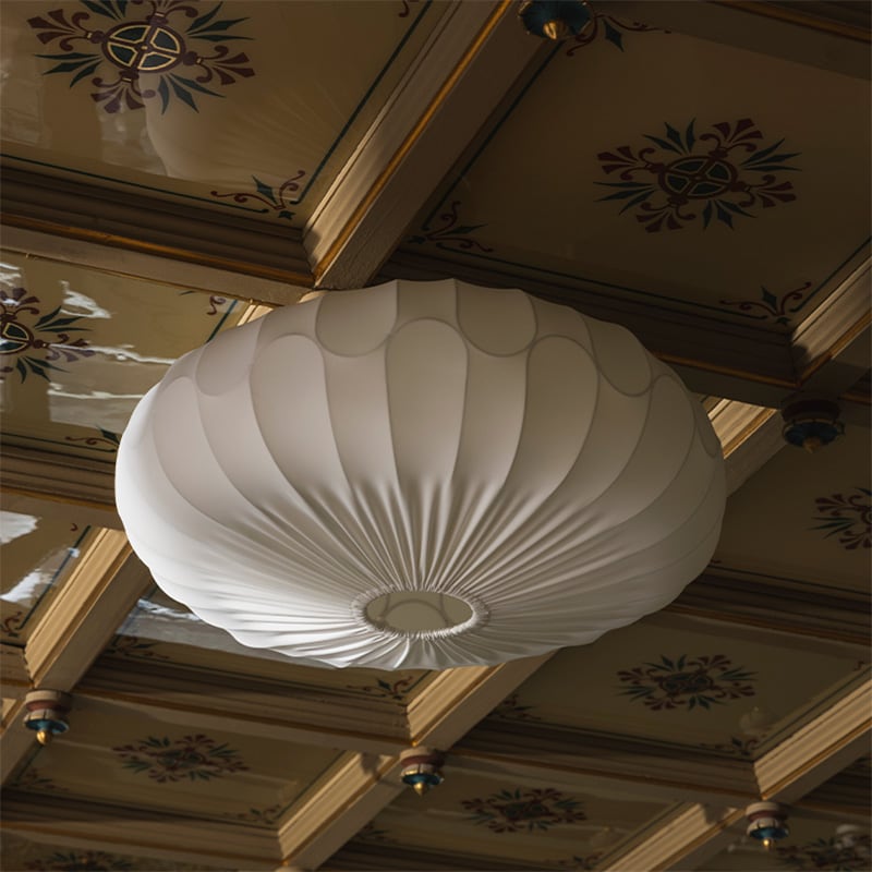 - Noah: En omtyckt och stilren plafond som vi säljer mycket av. Nu har serien utökats med en taklampa klädd i strukturerat bouclétyg som ger ett levande ljus.