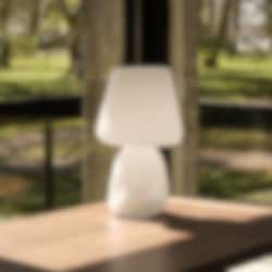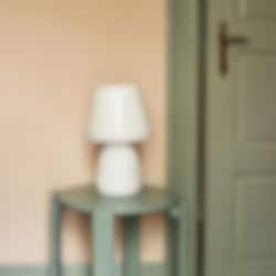 Apollo bordslampsskärm är en elegant bordslampa med ett mjukt, organiskt uttryck. Munblåst i opalglas för att skapa en distinkt tulpanformad siluett, den handgjorda designen säkerställer att varje bas har en något annorlunda storlek och form. Opalglaset ger en mjuk, omgivande glöd som tillför värme till omgivningen, vilket gör den lämplig att använda på hyllor, fönsterbrädor eller bord i en mängd olika privata och offentliga utrymmen.