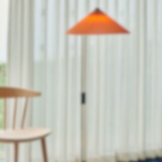 Design: Inga Sempé, 2022. Matin golvlampa från HAY har en modern, lyxig känsla samtidigt som den är klassisk. Den veckade skärmen som finns i flera olika färger för tankarna tillbaka till 60-och 70-talet men här i en formgivning som känns ny och anpassad för dagens hem.
