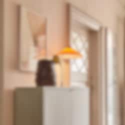 Designen har en modern, lyxig känsla samtidigt som den är klassisk. Den veckade skärmen som finns i flera olika färger för tankarna tillbaka till 60-70talet men här i en formgivning som känns ny och anpassad för dagens hem.