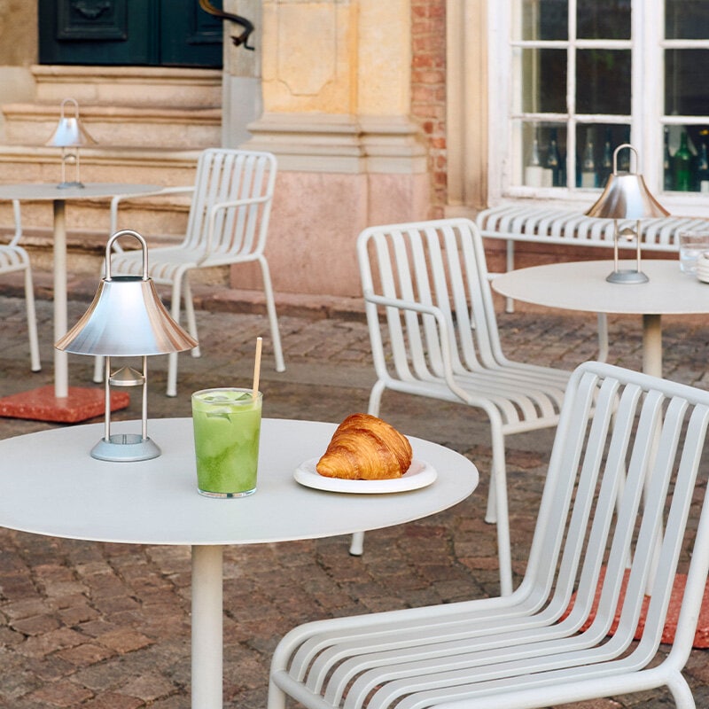 Den bärbara lampan Mousqueton i borstad rostfritt stål är en snygg och praktisk belysningslösning designad av det danska designmärket HAY. Det är en kompakt och bärbar lampa som kan användas i en mängd olika miljöer, från middagsbelysning i trädgården till läshörnan inomhus. En av de utmärkande egenskaperna hos Mousqueton-lampan är dess unika design, som inkluderar en karbinhake vilket gör att du kan hänga upp den i trädgrenar eller i taket i uterummet. Den moderna och multifunktionella lampan har ett laddningsbart batteri så att du enkelt och smidigt kan placera lampan på valfri plats. Tillverkad med en belagd stålskärm och en bas av zinklegering är den inte bara robust utan också vattentät, vilket gör att du kan känna dig trygg med att placera lampan i utomhusmiljöer. Lampan kommer i flera vackra färger och tar 3,5 h att ladda upp.