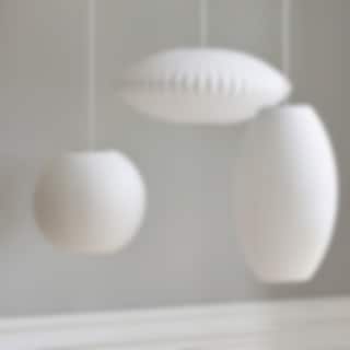 De klassiska bubble-pendlarna designades av George Nelson 1952. Inspirationen kom från ett par silkesklädda svenska lampor som han tyckte var för dyr att köpa. Ball bubble bjuder på en underbar rundhet som sprider ett varmt ljus i rummet..