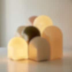 Parade bordslampa är en stämningsfull belysning designad av det danska paret Viola Heyn-Johnsen and Jonas Trampedach. Lamporna har en fyrkantig bas och välvd topp i färgat glas som gör den geometriska formen att uttrycket förändras beroende på vilken vinkel lampan än vrids. De noggrant utvalda storlekarna och färgerna kompletterar varandra i höjd, ton och temperatur, vilket skapar ett enhetligt intryck när flera lampor ses tillsammans.