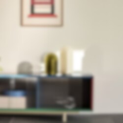 Parade bordslampa är en stämningsfull belysning designad av det danska paret Viola Heyn-Johnsen and Jonas Trampedach. Lamporna har en fyrkantig bas och välvd topp i färgat glas som gör den geometriska formen att uttrycket förändras beroende på vilken vinkel lampan än vrids. De noggrant utvalda storlekarna och färgerna kompletterar varandra i höjd, ton och temperatur, vilket skapar ett enhetligt intryck när flera lampor ses tillsammans.