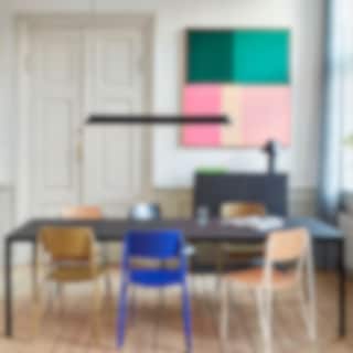 Den här taklampan, designad av Pierre Charpin, är den senaste varianten i serien PC från Hay där den passar väl in med sin enkla och eleganta profil. Skärmen är tillverkad av sammanpressad aluminium med våtsprejad finish. Utformningen är perfekt för att placera över ett matbord eller en köksö men fungerar också väl över skrivbord eller hyllor i offentliga miljöer.