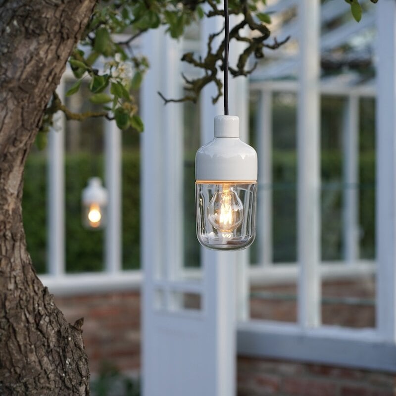 Ohm 100/215 outdoor taklampa IP44 E27 vit/klarglas