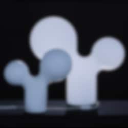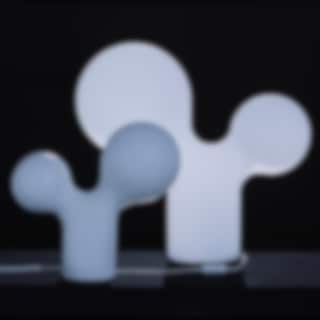 Double Bubble lanserades 2003 i samband med Aarnios 50-årsjubileum och har redan blivit en klassiker. Den finns i två storlekar, en för bord och som en monumental golvlampa. Tre ljuskällor är placerade inuti lampan, en i varje bubbla och en i foten.