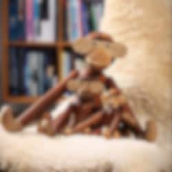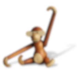 Den världsberömda leende träapan från Kay Bojesen. Det sägs att den kom till när Kay Bojesen blev tillfrågad om han ville designa en klädhängare till en barnmöbelutställning. Tanken var att man skulle hänga upp apan och att armarna och benen skulle fungera som krokar till mössan och halsduken. Träapan är en riktig klassiker och en populär present till både stora och små.