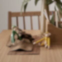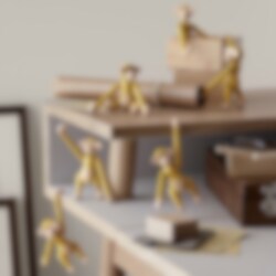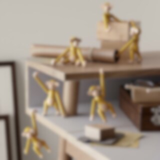 Den klassiska miniapan från Kay Bojesen i vintagegul, inspirerad av en originaltapet Bojesen själv skapade för barnkammaren på 1940-talet. Den varma retrotonen framhäver bokträdets naturliga uttryck och ger apan en ungdomlig, lekfull och tidlös personlighet.