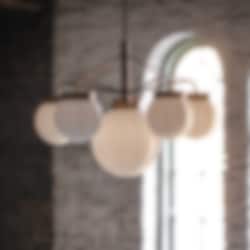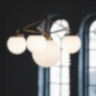 Strapatz taklampa är nästan som ett litet konstverk med levande och härlig form signerad Sabina Grubbeson. Dess rena linjer i rå mässing vackra glober i opalglas skapar skapar både en industriell och harmonisk atmosfär som samtidigt ger en touch av stil till rummet.