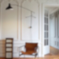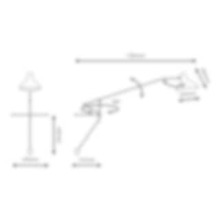 Lampan har en lätt industriell design som är en fin balans till dom mjuka runda formerna på skärmen. Trots att den formgavs redan på 50-talet är lampan modern och aktuell i dagens miljöer. Den är väldigt flexibel då den går att vinkla både skärmen och armen. Fin vid soffan, sängen eller över köksbordet.