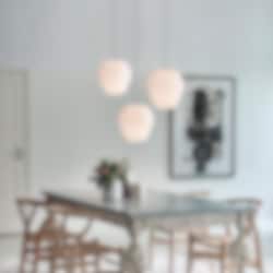 The Bouquet, eller "buketten", är en lampserie med klassiskt och fantasifullt skandinaviskt snitt. Den här taklampan är en sober pendel med flätad textilsladd och vackert detaljerad skärm. Den ger ett fint ljus och kan dimras ner till mysnivå. Den finns även som trippel pendel eller som en spännande variant av ljuskrona med fem eller sju skärmar.