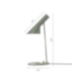 Designer: Arne Jacobsen 1957.AJ bordslampa från Louis Polsen. Arne Jacobsen designade AJ-lampan för SAS Royal Hotel i Köpenhamn år 1957. I dag betraktas AJ-serien som den design som den danske arkitekten är mest känd för över hela världen. Lampan med sin minimalistiska, distinkta form och fulländade ljusemission. AJ-lampan ger ett riktat ljus. Det vippbara armaturhuvudet kan justeras i sidled och vilket optimerar ljusspridningen ytterligare. Skärmen är vitlackerad på insidan vilket ger ljuset en behaglig spridning.