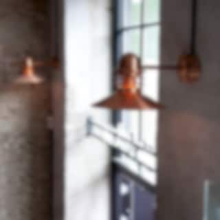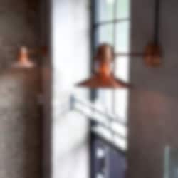 Armaturens breda skärm ger ett nedåtriktat, behagligt och bredstrålande ljus. Skärmens insida är matt vitlackerad, vilket ger ett enhetligt ljus, oavsett ljuskälla. Ringarna ger ett diskret ljus som bidrar till en dekorativ upplysning av armaturen i tänt tillstånd, samtidigt som den ger en svag belysning på väggen. Nyhavn finns i obehandlad koppar och viltlack.