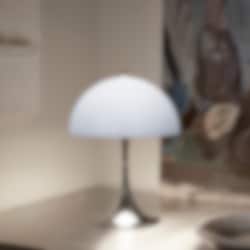 Panthella utsågs redan 1971 till en av Verner Pantons mest ikoniska designklassiker, med sitt unika formspråk där både foten och skärmen fungerar som reflektorer. De mjukt organiska formerna är typiska för den danska designern och bidrar till lampans tidlösa uttryck. Panthella 250 Portable är en nedskalad version av den populära bordslampan och erbjuder samma karakteristiska estetik i ett mer flexibelt format. Tack vare sin kompakta storlek är den enkel att placera i ett fönster, på en hylla eller på ett bord. Oavsett färg eller materialval sprider Panthella 250 Portable ett behagligt och exceptionellt ljus som förhöjer stämningen i alla miljöer.