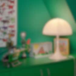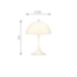 Lampan Panthella MINI är en mindre version av Verner Pantons populära bordslampa Panthella från 1971. Panton ville skapa en lampa där både foten och skärmen fungerade som reflektor, kombinerat med de organiska formerna som den danska designern är känd för. Akrylversionen skapar ett behagligt diffust ljus genom skärmen samtidigt som den reflekterar ljuset nedåt.