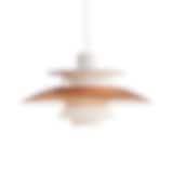 Det tog nästan 60 år, men till sist kom den klassiska PH 5 i en mindre variant, PH 5 Mini. Lampan är lika smart som snygg med sitt system av tre skärmar som gör den helt bländfri. Och det var också tanken när den skapades, att oavsett hur stark ljuskälla som användes eller om den hängdes högt eller lågt så skulle den förbli bländfri. PH 5 Mini finns i flera färger och kastar ett vackert ljus rakt nedåt, snett nedåt och upp mot taket. Den passar utmärkt på egen hand över det lilla köksbordet, eller i grupp, gärna på olika höjder och i olika färger.