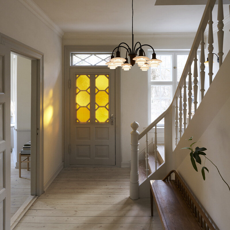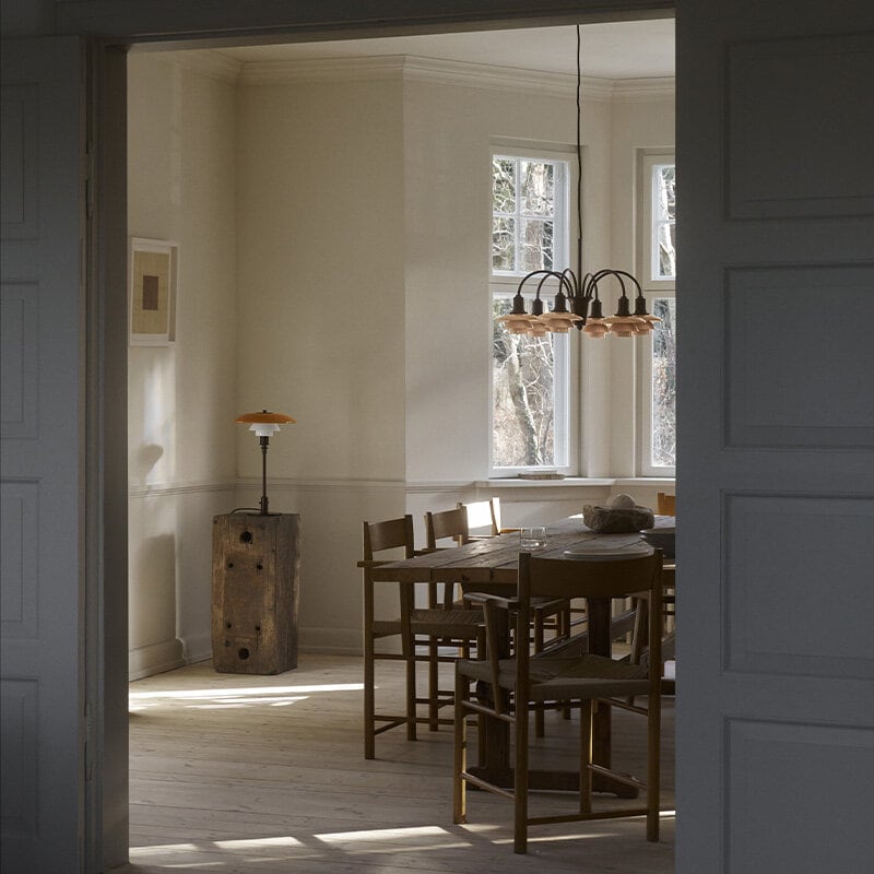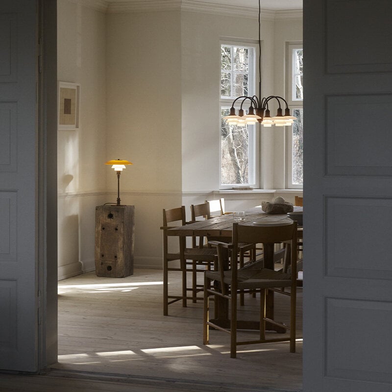 PH 5-pendeln som återfinns över många matbord i framförallt de danska hemmen. I samma serie hittar du även bord-, vägg-, golv- och utomhuslampor och i olika material som opalglas, koppar, krom, mässing och i regnbågens alla färger. Poul ligger även bakom