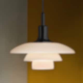 Design: Poul Henningsen.Armaturen avger ett mjukt och behagligt bländfritt ljus som är typiskt för Poul Henningsens reflekterande treskärmssystem. Armaturen finns med vitt opalglas eller svartmålad soft touch-metall med en vit insida. De genomskinliga skärmarna i munblåst opalglas i tre lager skapar ett varmt sken runt pendeln, där metallskärmarna med de vitmålade insidorna reflekterar ett fint och i första hand nedåtriktat ljus. Kombinationen av en övre skärm i metall och en mellan- och underskärm i opalglas ger både och. Den medföljande avskärmningen i frostat glas är smidig att sätta in för en ännu mjukare ljusfördelning.