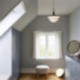 Design: Poul Henningsen.Armaturen avger ett mjukt och behagligt bländfritt ljus som är typiskt för Poul Henningsens reflekterande treskärmssystem. Armaturen finns med vitt opalglas eller svartmålad soft touch-metall med en vit insida. De genomskinliga skärmarna i munblåst opalglas i tre lager skapar ett varmt sken runt pendeln, där metallskärmarna med de vitmålade insidorna reflekterar ett fint och i första hand nedåtriktat ljus. Kombinationen av en övre skärm i metall och en mellan- och underskärm i opalglas ger både och. Den medföljande avskärmningen i frostat glas är smidig att sätta in för en ännu mjukare ljusfördelning.