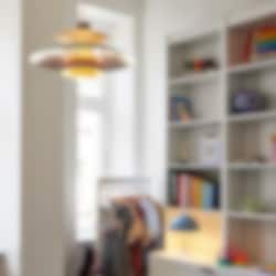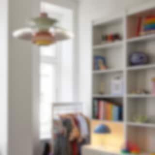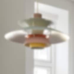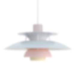 Den klassiska PH 5-lampan i pastell (ostrongrå/blå/rosa ) är perfekt för alla moderna hem. PH 5 skapades 1958, som en uppföljare till Poul Henningsens treskärmssystem, och har sedan dess blivit en välkänd favorit i danska hem. Lampskärmen riktar majoriteten av ljuset nedåt, samtidigt som den även avger ett sken åt sidorna, vilket skapar en bekväm, bländfri belysning som är karakteristisk för alla Louis Poulsen-lampor.