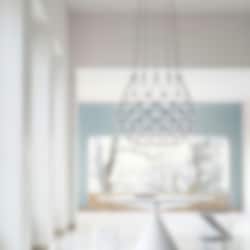Mesh består av ett nätverk av metall med ledljus i korsningarna. Detta gör att lampa nästintill är genomskinlig och all fokus är på ljuset. Man kan justera vilken sektor av ljuskällor som ska lysa, se på bilden. En mycket speciell lampa som kan förvandla ett rum.