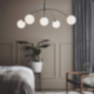 Meriot taklampa från Markslöjd är en fin och exklusiv lampa i robust metall med vita dekorativa glasglober. Med denna lampa i ditt hem kommer du få ett riktigt blickfång och ett dekorativt varmvitt ljus. Den passar i hemmets alla rum och kommer göra sig fin ovanför matbordet, vardagsrumsbordet eller i sovrummet.