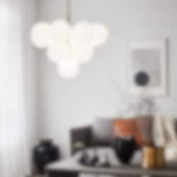Bianco är en helt underbar skapelse med sina 9 st opalfärgade glasglober i kombination med vacker mässing, vilket ger taklampan en helt underbart intryck. Ett mjukare och modernare alternativ till kristallkronan.