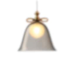 Bell Lamp är inspirerad av en av de äldsta formerna av kommunikation och skapar en inbjudande känsla. Den har en klockformad skärm i munblåst glas. På toppen sitter en dekorativ porslinsrosett i vitglaserat eller guldpläterat utförande, med en matchande takkåpa. Den diskreta genomskinliga sladden gör att lampan smälter in i sin omgivning. Bell sprider ett varmt, riktat ljus nedåt. Den passar perfekt över köksbordet eller som en stämningsfull ljuskälla i sovrummet.