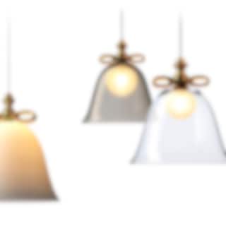 Bell Lamp är inspirerad av en av de äldsta formerna av kommunikation och skapar en inbjudande känsla. Den har en klockformad skärm i munblåst glas. På toppen sitter en dekorativ porslinsrosett i vitglaserat eller guldpläterat utförande, med en matchande takkåpa. Den diskreta genomskinliga sladden gör att lampan smälter in i sin omgivning. Bell sprider ett varmt, riktat ljus nedåt. Den passar perfekt över köksbordet eller som en stämningsfull ljuskälla i sovrummet.
